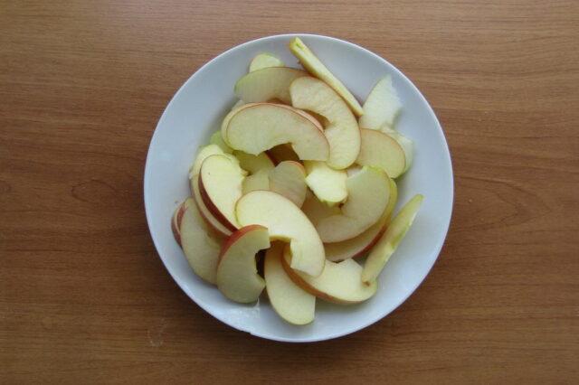 - Lavar las manzanas, cortarlas en rodajas, quitarles el corazón y el tallo. La cáscara se puede dejar puesta.