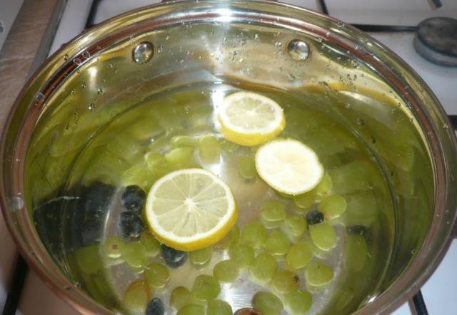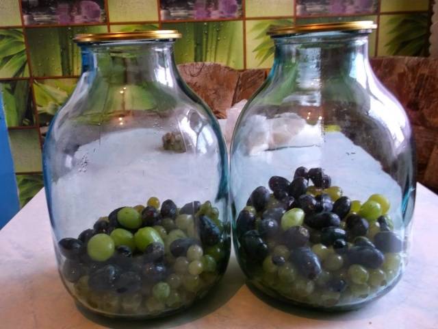 - El almíbar aún hirviendo se vierte sobre las uvas en frascos y se cubre con tapas. La bebida debe infundirse durante 15 minutos.