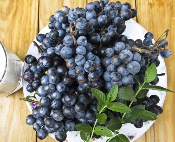 Esta compota casera es similar en concentración e intensidad de sabor al jugo natural. Las bayas de cualquier tipo son adecuadas para su preparación, pero Las uvas oscuras como Isabella, Moldova, Golubok o Kish-mish son las mejores.