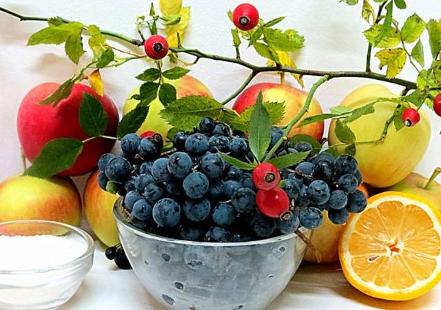 Para la compota de uva, es adecuada absolutamente cualquier uva, tanto azul como blanca o rosada. La bebida más deliciosa se obtiene de las variedades oscuras agridulces. Los cócteles con ciruelas, manzanas o peras no son menos buenos.
