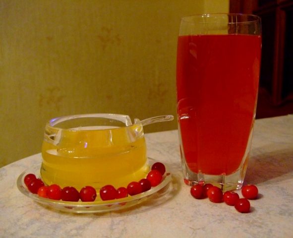 ¡Comentario! Para aumentar la utilidad del jugo de arándano, primero se enfría el caldo y luego se disuelven entre 150 y 200 g de miel. - Después de enfriar, el caldo se mezcla con jugo de arándano previamente exprimido y se revuelve; el jugo de arándano está listo.