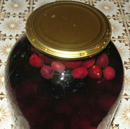 Las bayas dispuestas en frascos se vierten con jarabe de azúcar. La compota se trata con agua hirviendo durante media hora, luego se enrolla y se enfría debajo de una manta.