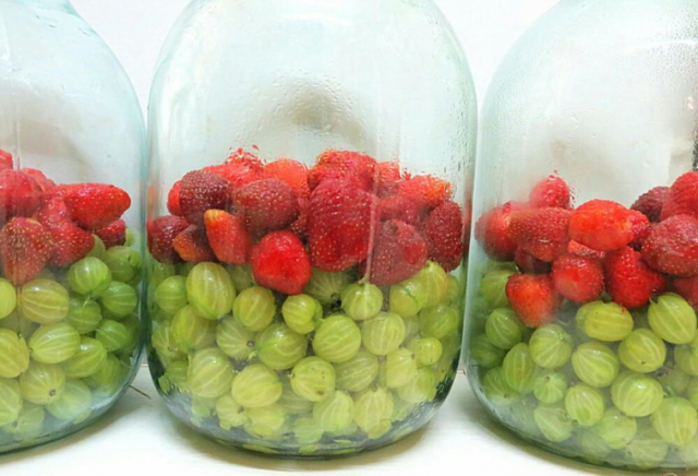 Las grosellas y las fresas son cultivos de verano, cuyas frutas enlatadas lo calentarán con cálidos recuerdos en los fríos días de invierno. Para preparar una compota de grosella espinosa con fresas, necesitará: