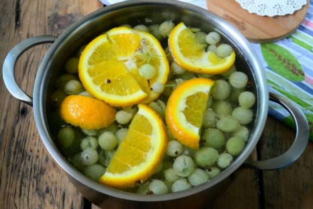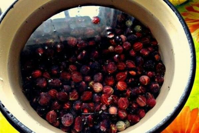 Si la compota de grosella espinosa incluye componentes adicionales, también deben prepararse con anticipación: pelar, enjuagar y secar.