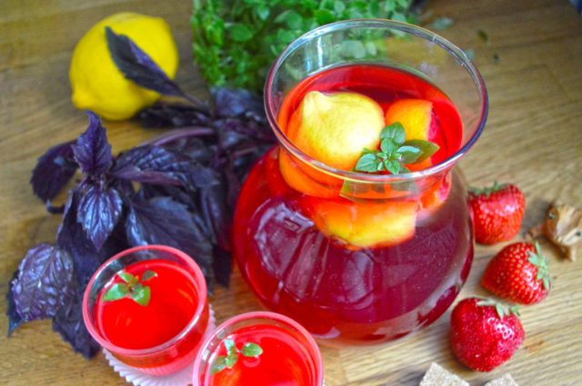 Una bebida preparada según cualquiera de las recetas, cuando está fría, se asemeja a una refrescante limonada, y cuando está caliente, se asemeja a un té de frutas o compota. No tenga miedo de usar albahaca, porque en combinación con el limón no solo tiene un hermoso color, sino también un sabor agradable. Se puede preparar de diversas formas agregando menta, limón, jengibre y otros ingredientes. Pero para hacer que la compota sea más saludable, después de cocinarla se enfría y luego se vierte jugo de cítricos, que cambia inmediatamente el color del líquido. Algunas personas agregan miel en lugar de azúcar.