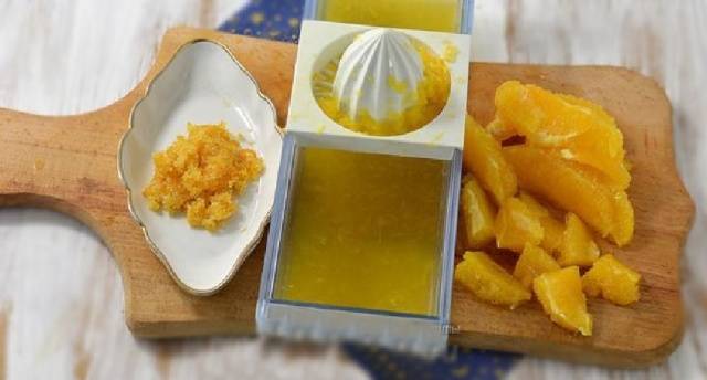 Mientras la calabaza hierve, prepara las naranjas. La fruta debe lavarse bien. Pele una naranja, exprima el jugo, retire la ralladura, agregue 3 cucharadas de azúcar y muela bien. Use un rallador fino para quitar la ralladura.