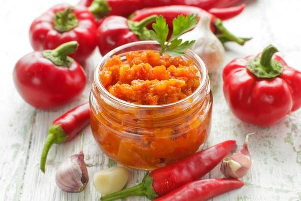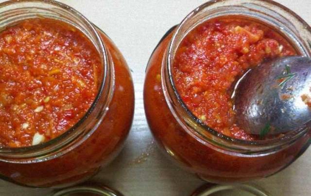 Si desea almacenar esta salsa en los estantes a temperatura ambiente, deberá hervir todas las verduras durante al menos una hora. Las recetas de cocina son casi las mismas que recetas de adjika cruda... La lista de ingredientes es la misma. En nuestro sitio puedes encontrar una gran cantidad de recetas para esta deliciosa y saludable salsa. ¡Buen apetito!
