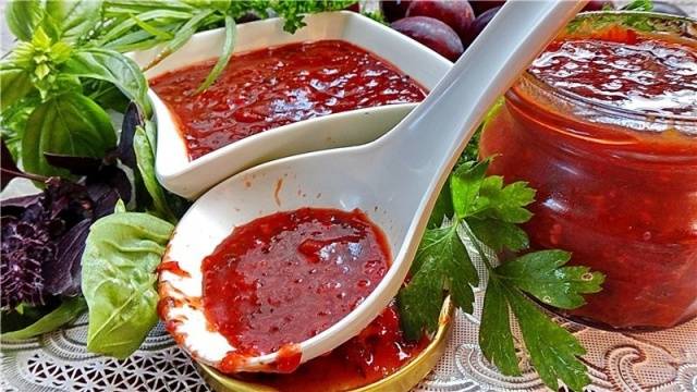 El adjika elaborado con ciruelas y pimientos tiene un sabor muy agradable.