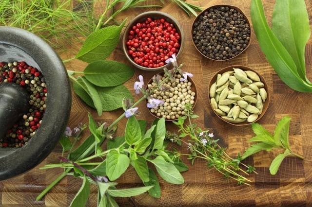 - Agregue sal, hierbas finamente picadas y cilantro en polvo.
