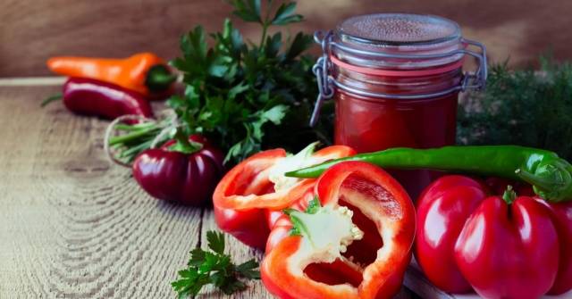 Receta adjika de pimienta búlgara fácil para el invierno. El condimento es aromático, medio picante. El picante siempre se puede ajustar a su gusto agregando o restando la cantidad de pimientos picantes y ajo.