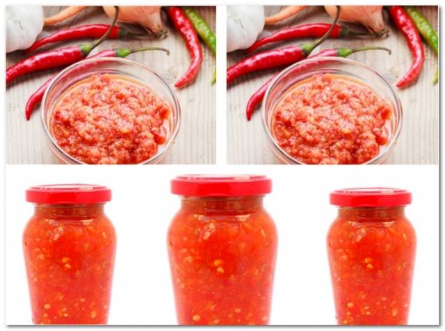 Incluso un ama de casa novato puede hacer esta receta tradicional. Consiste en tomates, ajo, pimientos y pimientos picantes que son familiares para adjika. A menudo, las amas de casa usan una receta similar para una salsa para el invierno con la cocción.