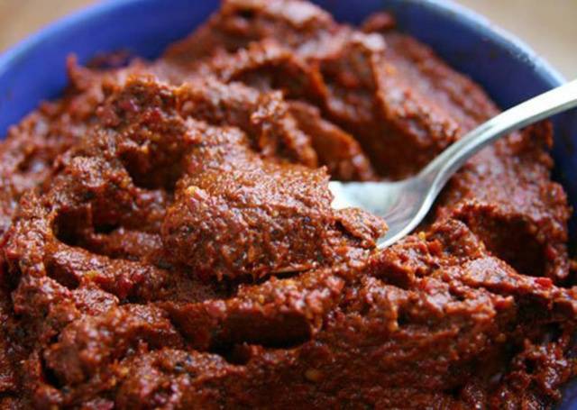 No se sabe si la adjika se prepara en Georgia para una receta similar. Recibió su nombre del uso de nueces. La salsa debe estar sin manzanas.