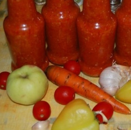 Tomates, zanahorias y manzanas: esta combinación se puede encontrar en muchas recetas adjika. La singularidad de cada receta individual radica en la proporción de estos ingredientes y la disponibilidad de productos y especias adicionales. La receta clásica le permite obtener una salsa picante con un regusto agridulce. Esta es la receta que utilizan muchos chefs, por lo que se decidió dar una descripción detallada de la misma.