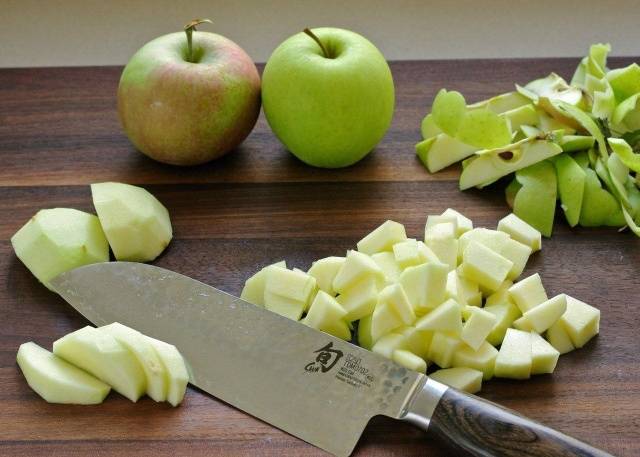 - Se debe pelar una manzana ácida y quitar las vainas de semillas.