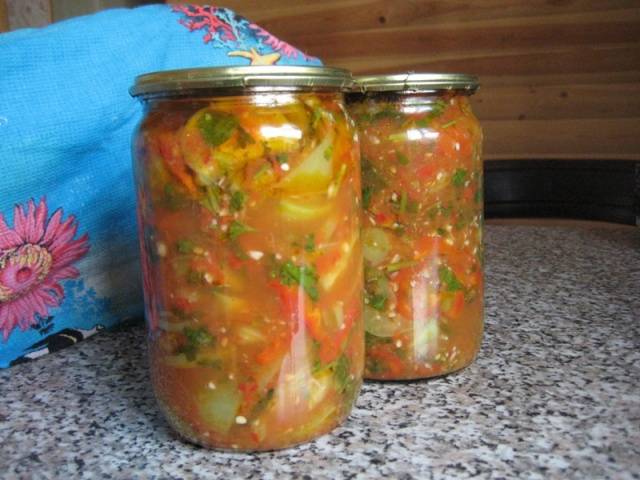 Una receta para los que no son muy aficionados a la calabaza. En adjika, no se siente, el sabor de la preparación tiene un ligero amargor, convirtiéndose en una dulzura sutil.