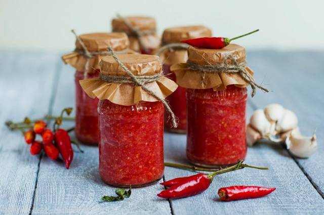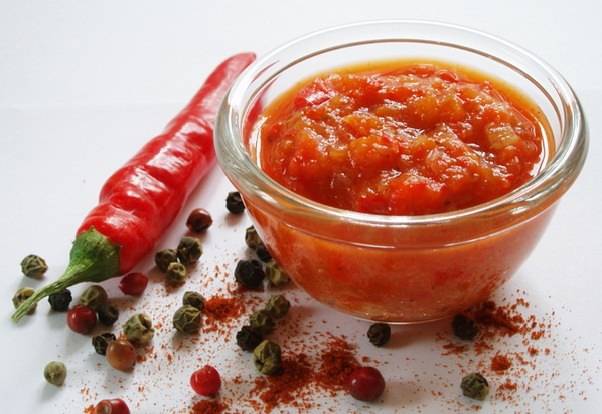 La salsa, que no se somete a un tratamiento térmico, contiene casi los mismos nutrientes y vitaminas que las verduras frescas. El pimiento picante ayuda a fortalecer el sistema inmunológico, por lo que comer adjika "errante" no solo es sabroso, sino también saludable.