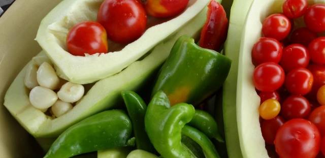 - Todas las verduras y frutas se lavan a fondo con agua corriente, después de lo cual se limpian, se cortan los tallos y se eliminan las semillas.
