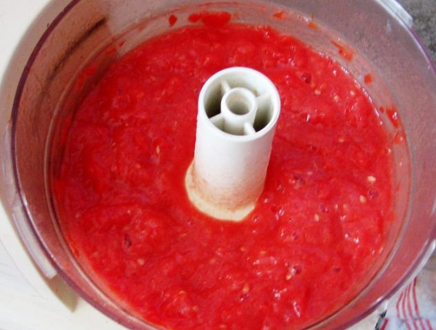 - Los tomates se cortan en puré, lo mejor de todo con una licuadora.