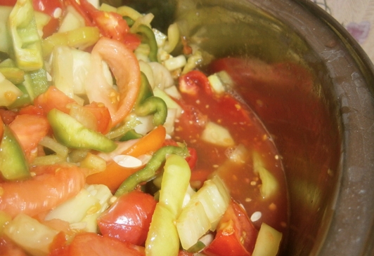 La ensalada preparada según esta receta tiene un rico sabor y aroma a tomate debido a la gran cantidad de ajo.