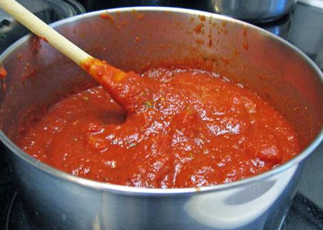 - El relleno se prepara agregando aceite y especias a la masa de tomate.
