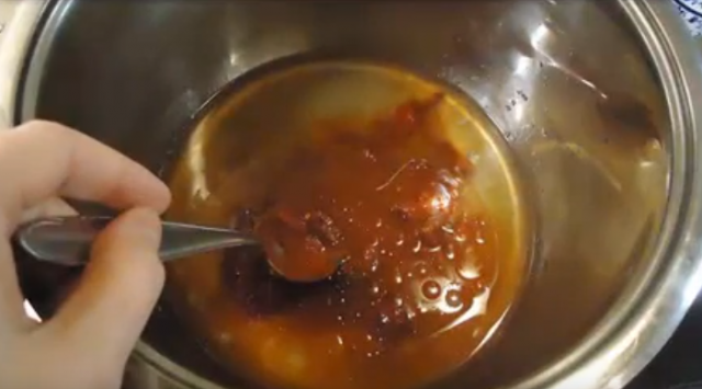- La pasta se disuelve en agua, se mezcla con especias y aceite.