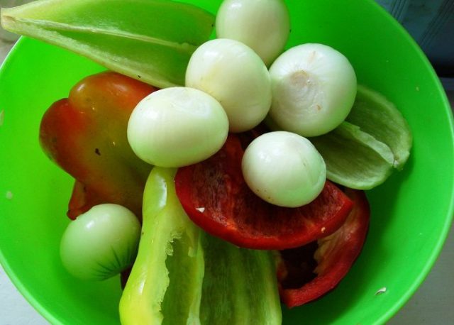 - Todas las verduras, excepto los frijoles, se cortan, se sazonan con especias y aceite y se hierven durante 1/3 de hora.