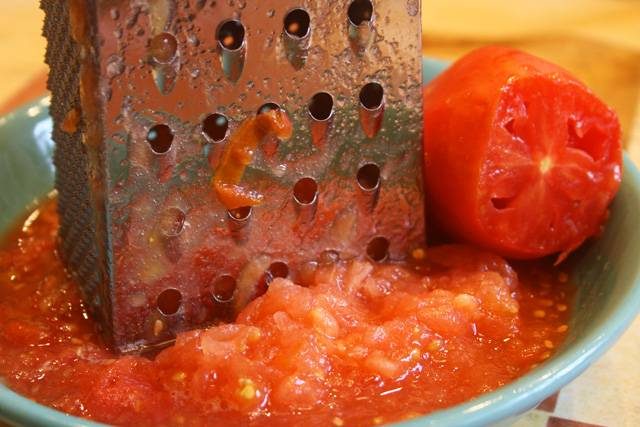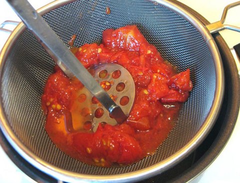 - Los tomates se pelan, se cortan en una licuadora.¡Consejo! Puedes usar una picadora de carne.