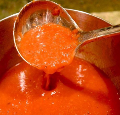 - Hervir por otros 5 minutos y la salsa está lista para ser rellenada en frascos esterilizados. El cierre hermético es la condición principal para la conservación de los alimentos enlatados.