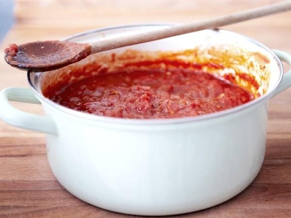 - Los tomates para esta salsa se seleccionan dulces y completamente maduros. En su ausencia, es muy posible utilizar pasta de tomate preparada de buena calidad.