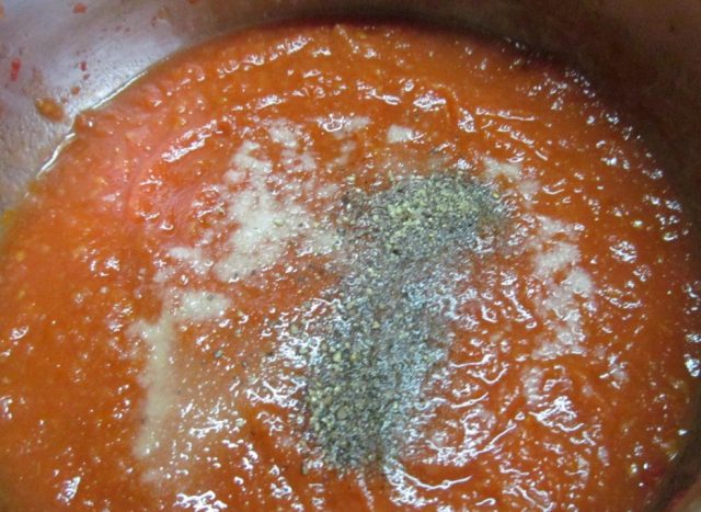 - Las especias se agregan a la masa de tomate y se hierven durante un cuarto de hora.