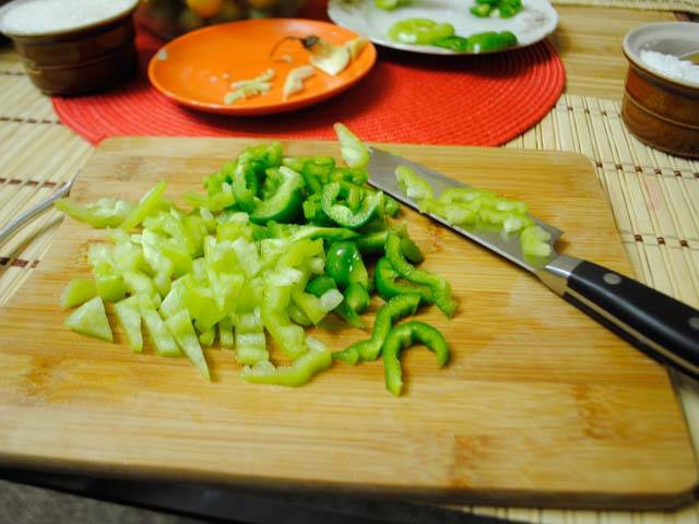 Esta receta difiere no solo en el método de cocción, en el horno, sino también en la adición de pimiento, lo que hace que el sabor de la preparación sea más suave y delicioso.