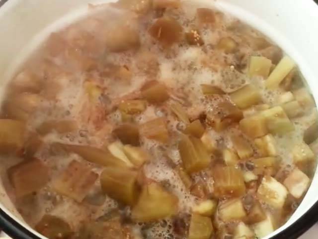 En este momento, pelar y picar el ajo y preparar la marinada, llevar a ebullición.