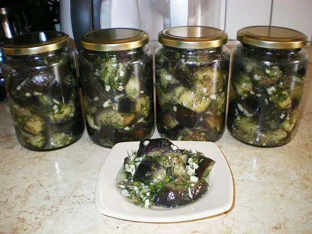 Cosecha para el invierno: berenjenas como champiñones con ajo y eneldo sin esterilizar