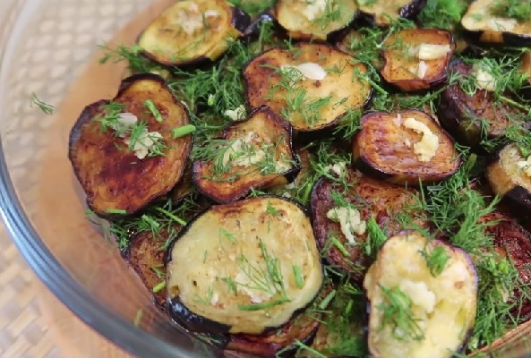 Deliciosa ensalada de berenjena con eneldo y ajo