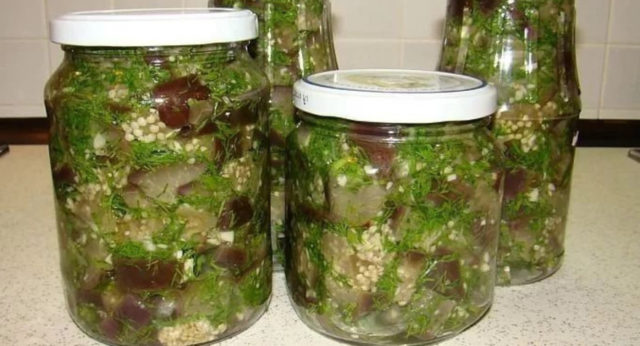 Receta de berenjena con eneldo para el invierno sin esterilización.