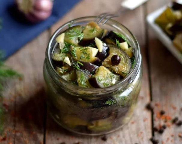 Otra receta simple de berenjena con ajo y eneldo consiste en hacer una marinada picante. El resultado es un delicioso aperitivo frío que combina bien con otros platos.