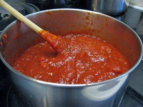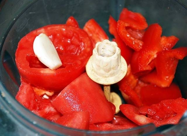 - Adjika, como base de la merienda, debe ser homogénea, por lo que los tomates, los pimientos y el ajo preparados deben picarse.