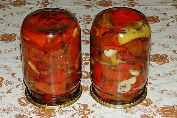 - Prepare pimientos dulces de diferentes colores: amarillo, naranja, rojo. Se verán hermosos en el frasco y en la mesa.