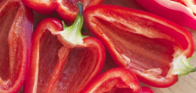 - Los pimientos morrones (5 piezas) se cortan en trozos, se quitan las semillas y los tallos.
