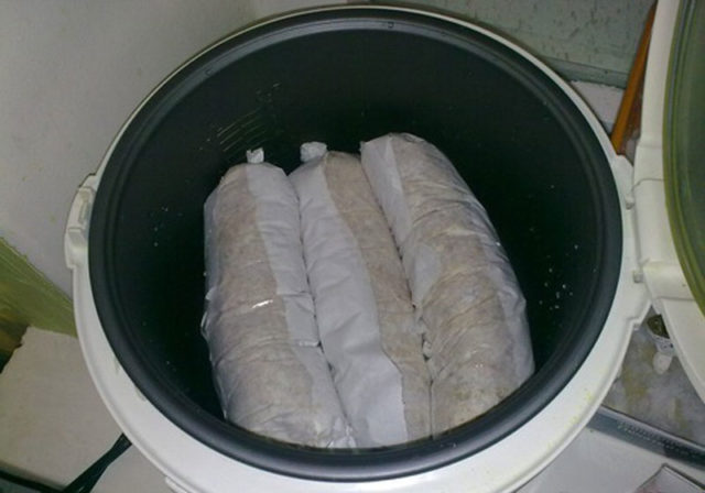 - Después de la señal de sonido, apague el dispositivo, retire la salchicha y enfríe en bolsas.