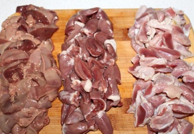 La salchicha de pollo está hecha de estómagos, hígado, corazones.