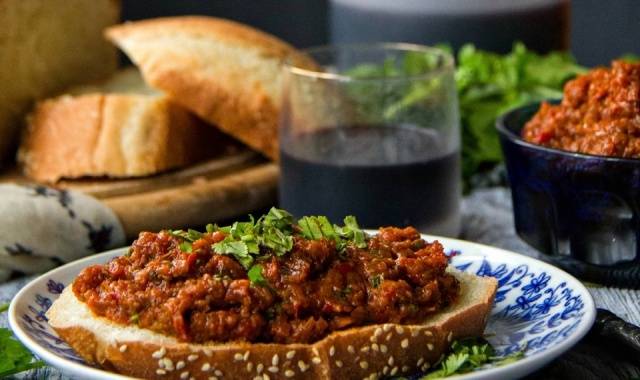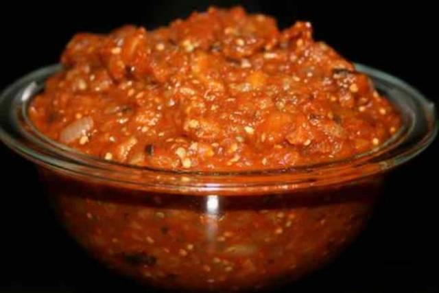 Tomar 1-2 kg de berenjena, lavar bien y hornear junto con la piel en el horno a la parrilla o bandeja. Después de que las verduras se hayan enfriado, quíteles la piel, córtelas en trozos alargados y déles la vuelta a través de una picadora de carne. A la masa de berenjena rallada, agregue unas cucharadas de jugo de limón o naranja recién exprimido, hierbas finamente picadas, según sus gustos y sal. Mezclar todo bien. Si lo desea, puede agregar unas cebollas picadas con una picadora de carne con dientes de ajo. Esta Caviar de berenjena almacenado solo en el refrigerador, pero es muy sabroso y saludable.
