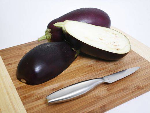 Después de lavar con agua fría, pelar las berenjenas, si lo desea, cortar en trozos de cualquier tamaño y forma y hervir en agua con sal hasta que se ablanden.