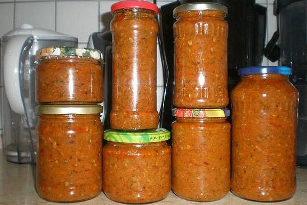 Tradicionalmente, el más popular es Caviar de berenjena... Cabe señalar que este plato, especialmente en forma de comida enlatada, es originalmente ruso, o mejor dicho, incluso soviético, ya que fue inventado por tecnólogos de alimentos en el siglo pasado.