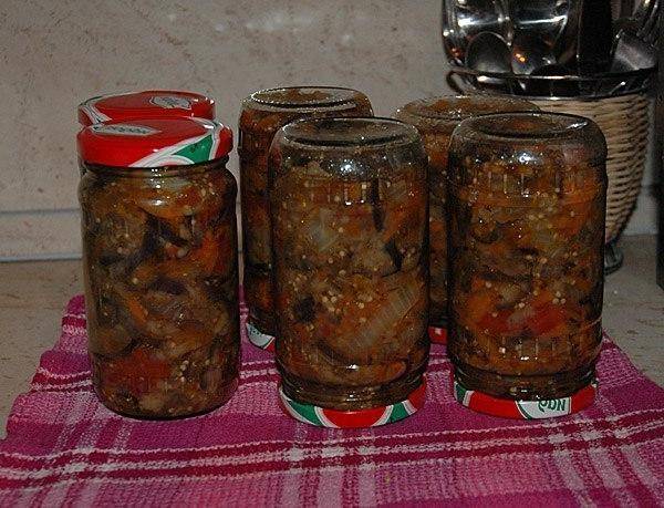 Inmediatamente después de la preparación, y sucede aproximadamente una hora desde su comienzo, colocamos el caviar en frascos esterilizados secos. Lo enrollamos y envolvemos tibiamente durante 24 horas. Este plato brillante y picante ha absorbido todos los aromas de oriente. Será una decoración exótica para mesas cotidianas y festivas.