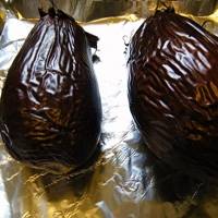 Para esta receta, las berenjenas deben hornearse en el horno. Para hacer esto, se coloca una bandeja para hornear con las azules en un horno caliente (temperatura de unos 200 grados) durante 40 minutos.