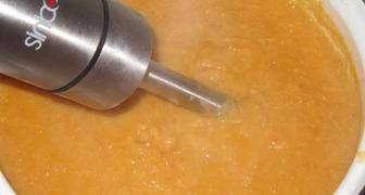 Transfiera las verduras terminadas a otro plato y conviértalas en puré de papas con una licuadora. Después de enfriar, se puede comer tal caviar.