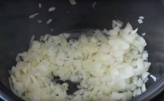 Pelar la cebolla, picar finamente y sofreír en aceite vegetal hasta que esté transparente.