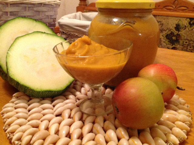Caviar de calabacín y calabaza con manzanas, zanahorias y ajo