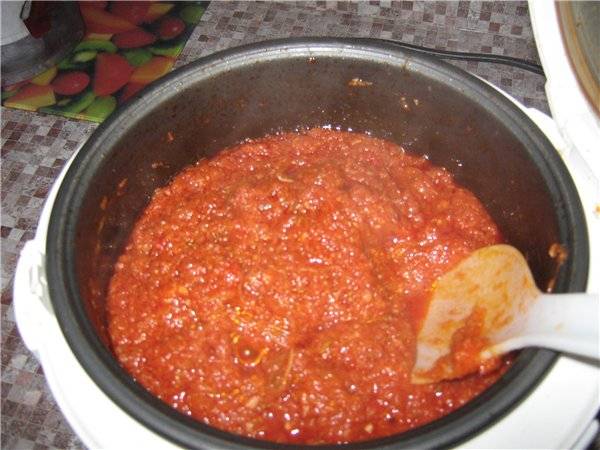 La pasta de calabaza se puede cocinar en una olla de cocción lenta. Esta receta requiere: 2 kg de calabacines, 750 gr. tomates, 400 gr. cebollas, 250 gr. zanahorias, pasta de tomate 2 cdas.l, aceite 2 cucharadas. l, especias.